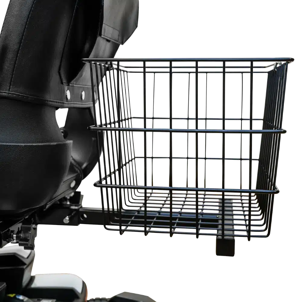 A rear basket for mobility scooters is a great option to meet your storage needs. Whether you’re grocery shopping and need some extra leg room or you’re traveling and can’t carry all your items while driving at the same time, a rear basket provides plenty of space while keeping your items close at hand. If you are carrying smaller items, a small or large saddlebag might be best for you. A rear basket, on the other hand, is best for larger items. It mounts on the back of your scooter, keeping your items secure so you can drive, hands free and worry-free. Finding a rear basket for mobility scooters is easy, but you don’t want any old basket. If you want quality and reliability, we recommend checking out our rear basket accessory. Our rear baskets are built specifically to mount to the back of your Pride® electric scooter.