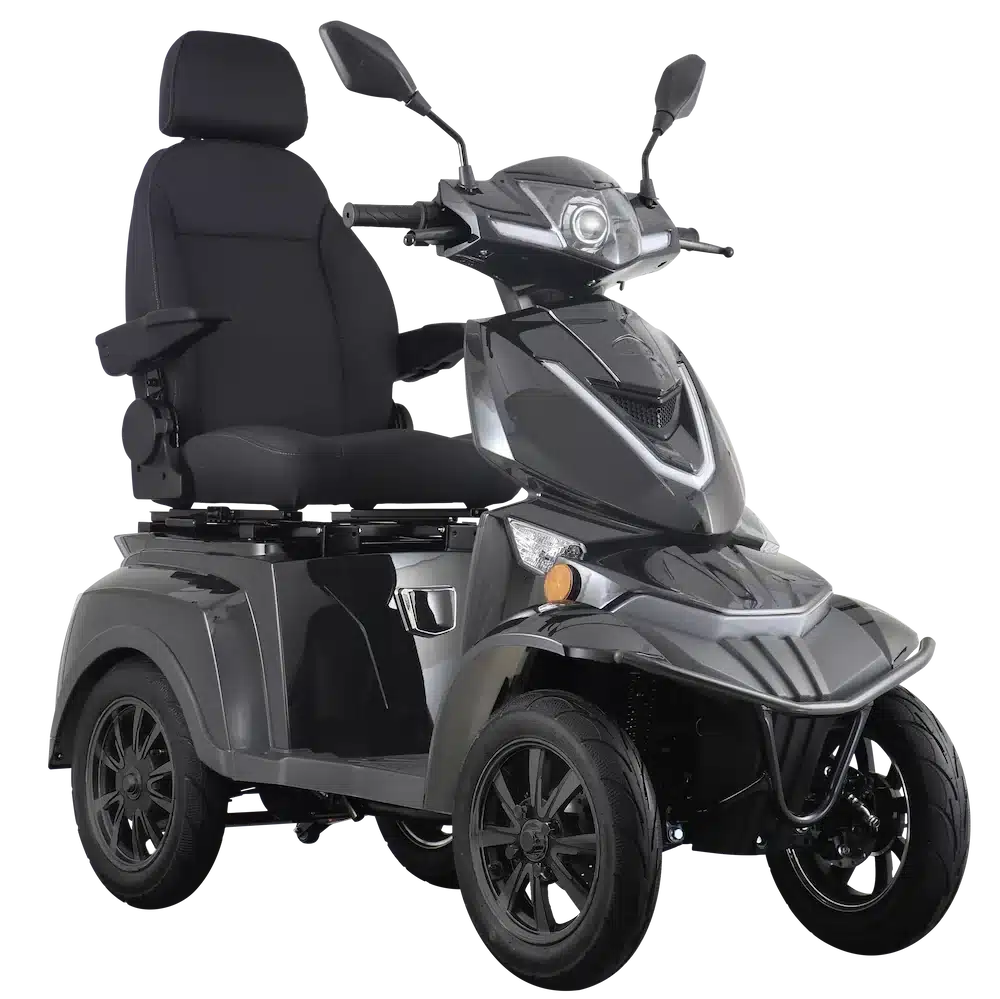 Die entnehmbare Batterie macht das Laden unkompliziert, während LED-Beleuchtung, Rückspiegel und Magnetbremse für maximale Sicherheit sorgen. Auch technisch hat der Speed 4 einiges zu bieten: Musik über Radio oder Bluetooth, Ladestation für Ihr Handy und geschützte Ablagefächer.