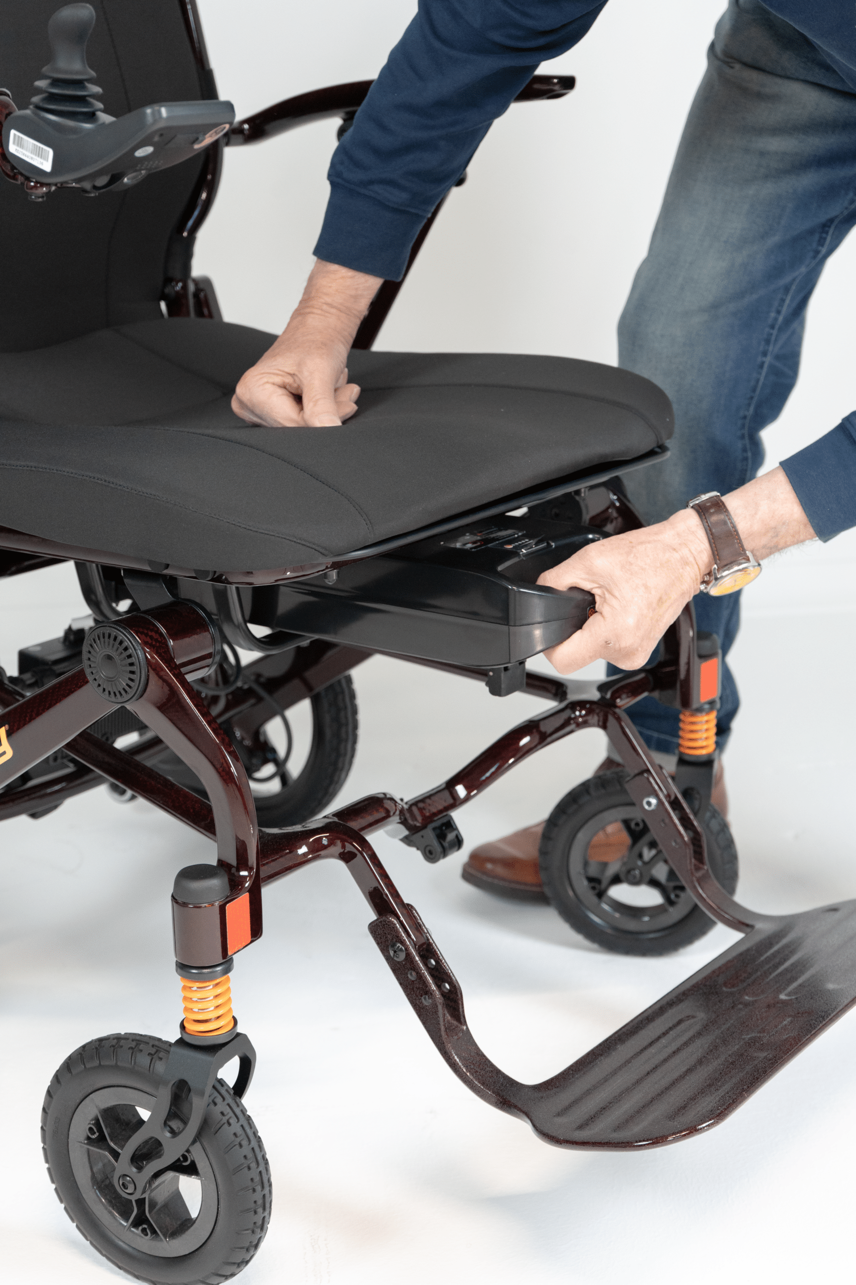 Der Jazzy Carbon Max HD kombiniert kraftvollen Antrieb mit einem kompakten, faltbaren Design.