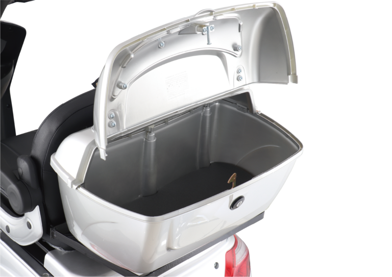 Gestalten Sie Ihren Scooter oder Elektrorollstuhl individuell mit Zubehör wie Satteltaschen und USB-Ladegeräten.