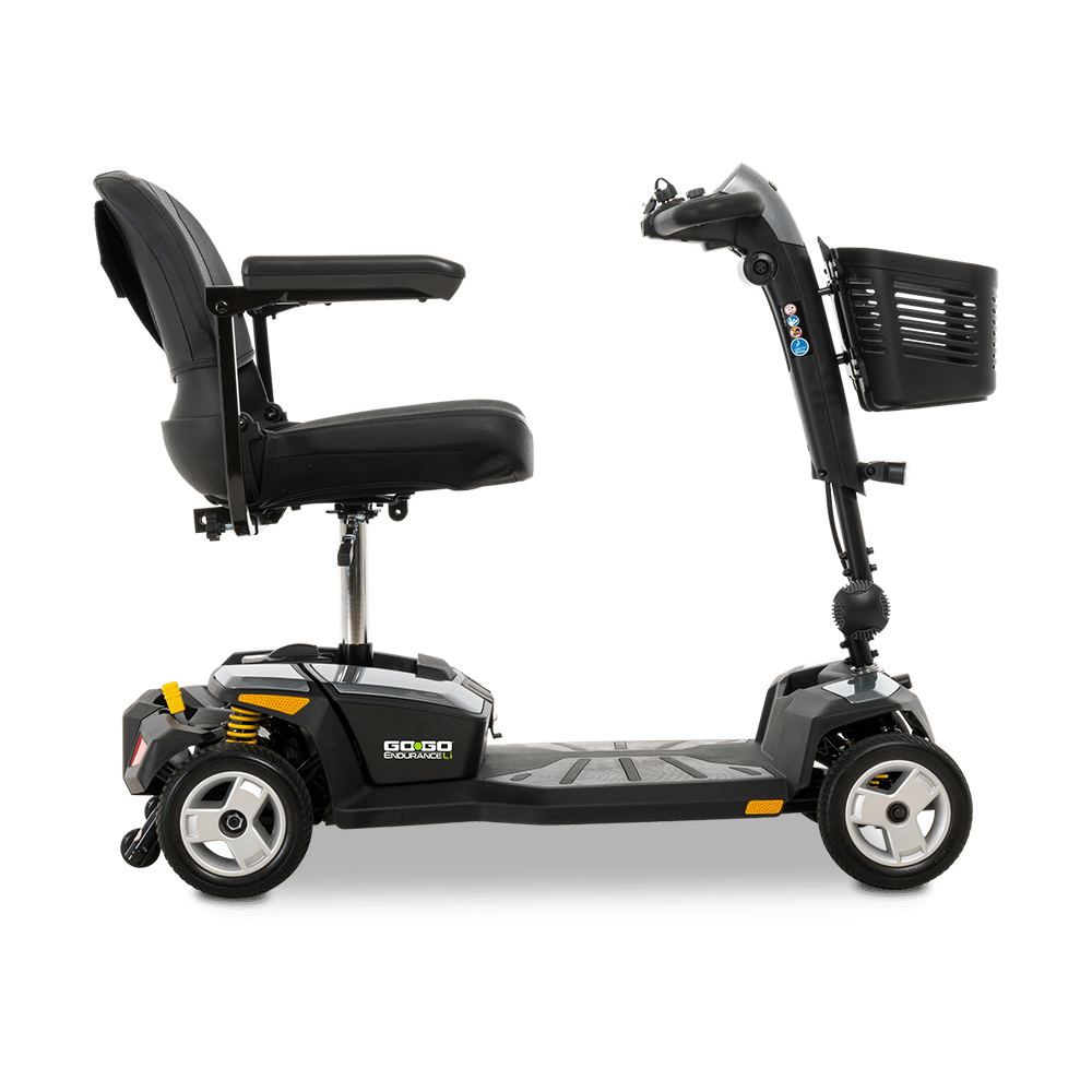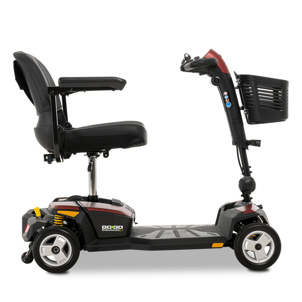 Travel with ease and comfort with the Go Go Endurance Li 4-wheel mobility scooter. Designed for portability, convenience, and safety, it features a lightweight 8 Ah airline-compliant lithium battery pack, making it perfect for air travel. The feather-touch disassembly system allows quick and effortless breakdown for transport, while Comfort-Trac Suspension ensures a smooth, stable ride on any journey. Available in a choice of stylish colours, the Go Go Endurance Li is your ideal travel mobility solution for holidays, city trips, and everyday adventures.