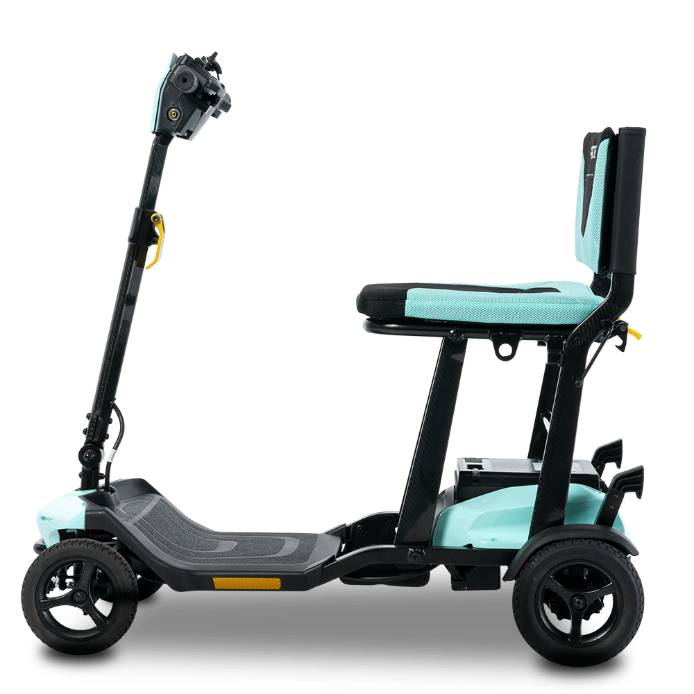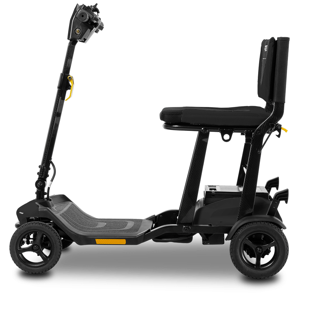 Travel with ease and confidence with the Go Go Super Portable mobility scooter, designed for lightweight strength and effortless transport. Weighing just 18.9 kg, its durable carbon fibre frame offers exceptional strength without adding extra weight. The unique folding mechanism allows for quick and simple storage, making it perfect for car boot transport, public transport, or air travel. Reaching speeds of up to 4 mph, this scooter combines portability, performance, and durability, making it the ideal choice for on-the-go independence.
