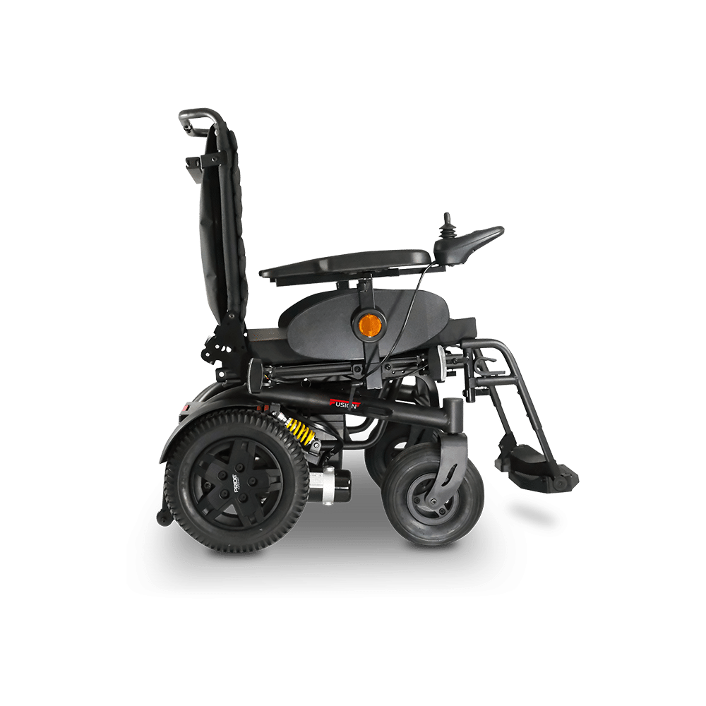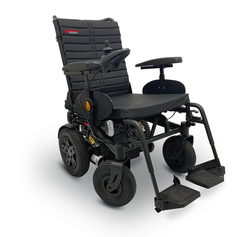 The Fusion E powerchair is a cost-effective mobility solution built for performance, versatility, and everyday independence. With its rear wheel drive system, this innovative electric wheelchair delivers improved obstacle-climbing ability, superior traction, and a smooth, stable ride across different terrains.