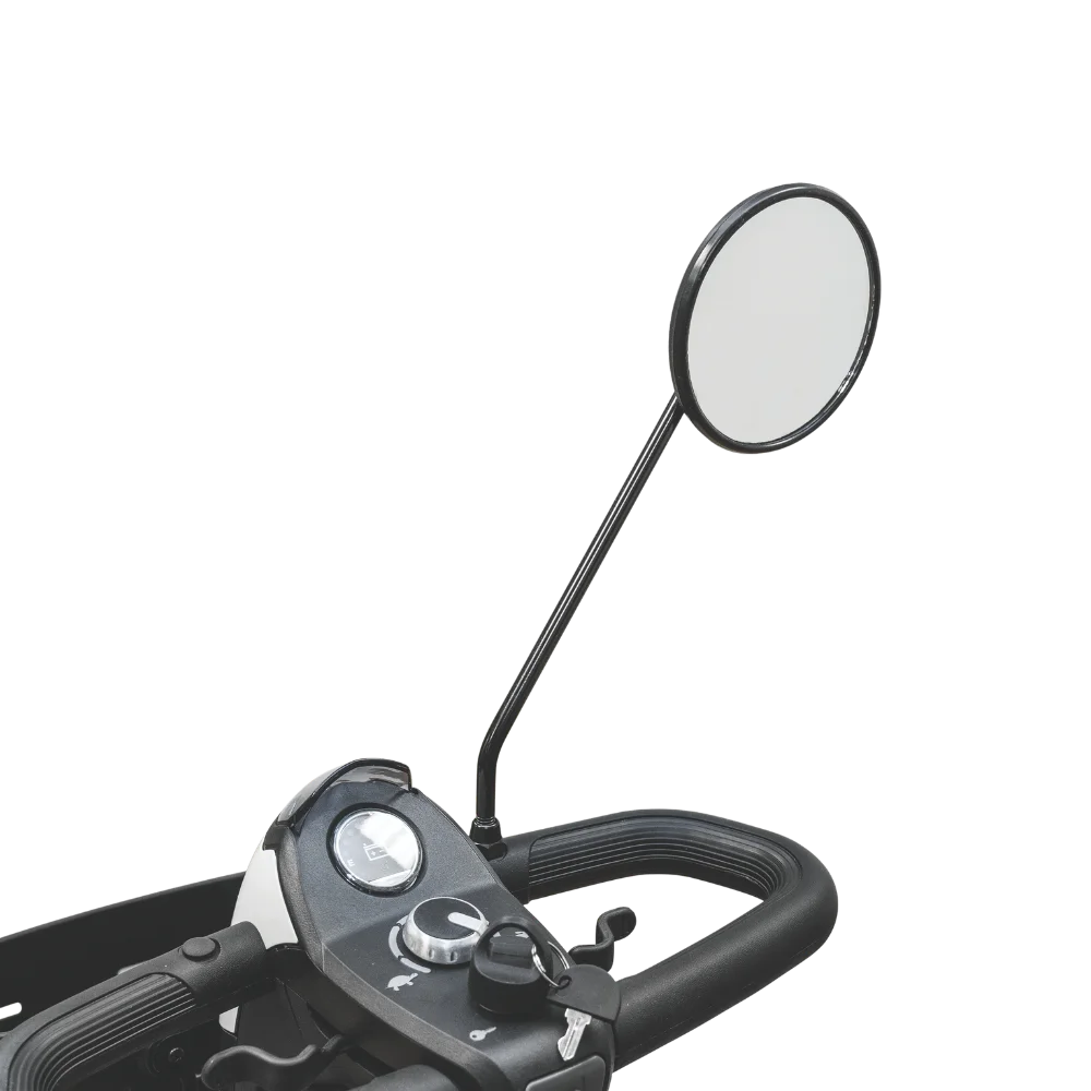 La seguridad es sumamente importante, especialmente al cruzar calles concurridas, conducir por las aceras o navegar por estacionamientos. Puedes ser más visible para peatones y vehículos con la bandera de seguridad para scooters. ¿Pero qué hay de ver qué sucede detrás de ti mientras conduces tu scooter? Puede que no tengas ojos en la nuca, ¡pero te ofrecemos lo siguiente mejor!